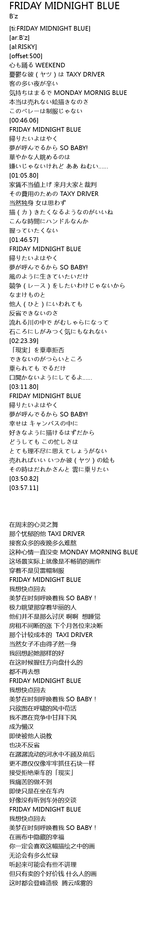 Friday Midnight Blue 歌词 歌词网